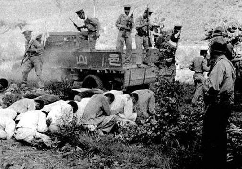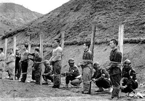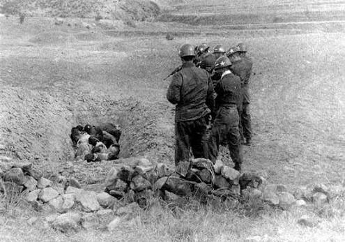 1950年4月14日,在汉城东北10英里处的刑场,39名“政治犯”被处决,共出动宪兵2百人,现场没有任何记者,有6名美军军官参观并拍摄了照片,在50年代这些照片并没有公开。按照韩国现在的说法,这些“政治犯”都是同情左翼的平民。